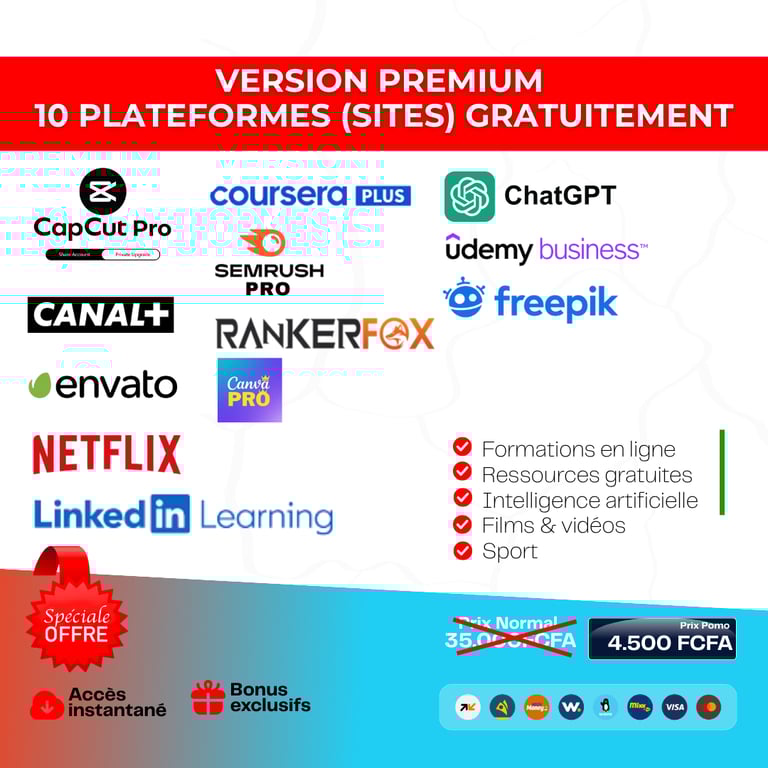 10 Plateformes premium débloquées Gratuitement