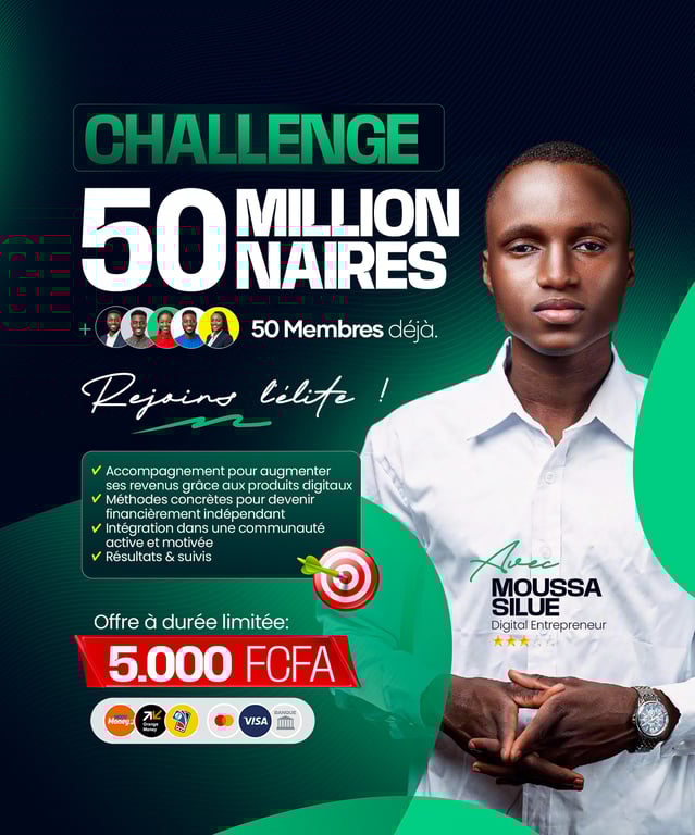 Le challenge 50M permet aux amoureux du business de la vente des produits digitaux de se surpasser.